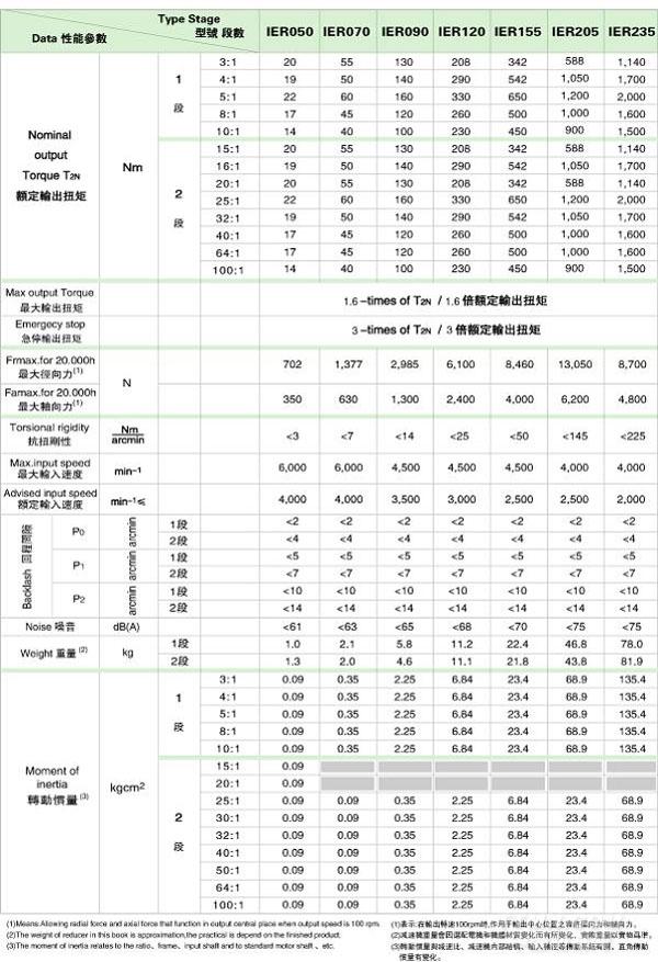 IBR 系列精密行星減速機技術參數