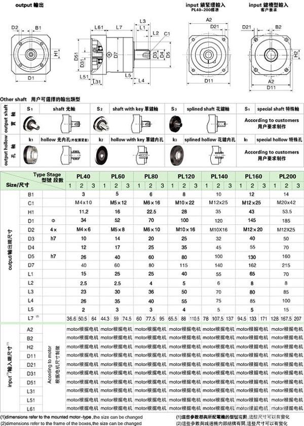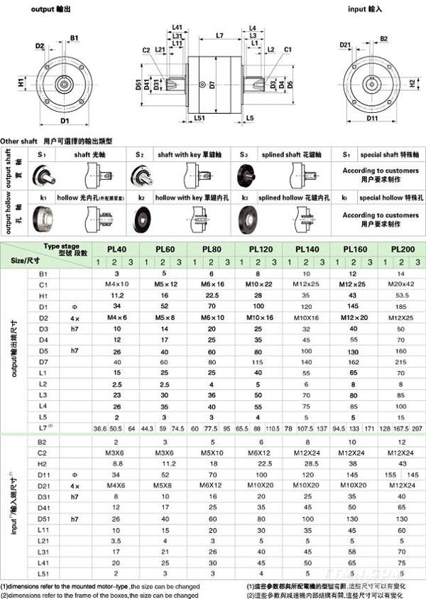 PL/WPL 系列精密行星減速機(jī)技術(shù)參數(shù)
