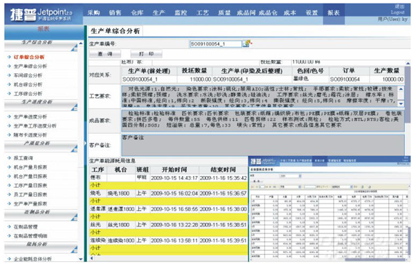 系統(tǒng)根據(jù)實時記錄下的機臺歷史操作信息,分產(chǎn)品和工藝建立完備的產(chǎn)品管理檔案。當(dāng)接到訂單時,系統(tǒng)根據(jù)歷史生產(chǎn)數(shù)據(jù)挑選最佳生產(chǎn)工藝流程,制定機臺最優(yōu)運轉(zhuǎn)參數(shù),并指導(dǎo)安排車間生產(chǎn)計劃。