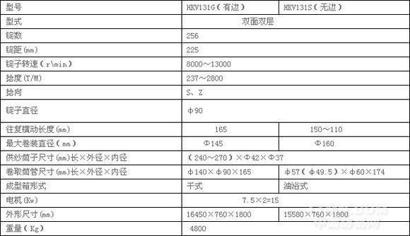 HKV131G(S)型倍捻機是一種適用以化纖、混紡等為原料的加捻設(shè)備,實現(xiàn)一轉(zhuǎn)兩捻,效率比傳統(tǒng)捻線機成倍提高,卷裝容量增大,萬米無接頭,加捻質(zhì)量大幅度提高。該機具有性能價格比優(yōu)越、錠速均勻、噪音低等優(yōu)點。其中卷取成型方式有無邊卷繞(型號為HKV131S型)與有邊卷繞(型號為HKV131G型)兩種機型可供選擇。其最終產(chǎn)品廣泛應(yīng)用于造織領(lǐng)域.