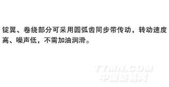 錠翼和筒管采用同步帶傳動(dòng),轉(zhuǎn)速大于1600r/min,傳動(dòng)平穩(wěn)、噪聲低、效率高;