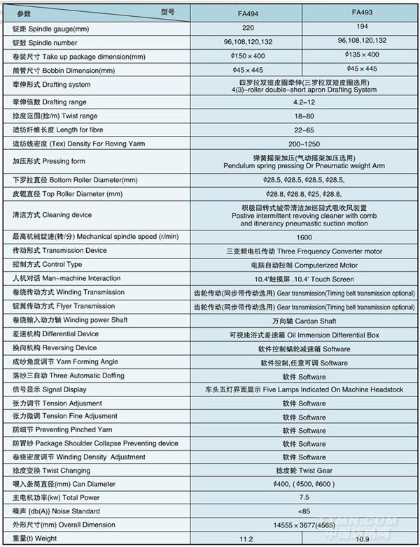 - [產(chǎn)品]-->FB494/FB493毛紡懸錠粗紗機