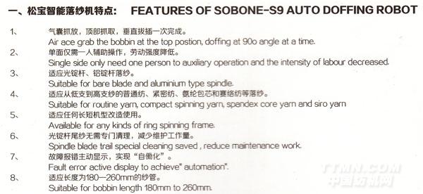 - [產品]-->SOBONE S9環錠紗智能落紗機