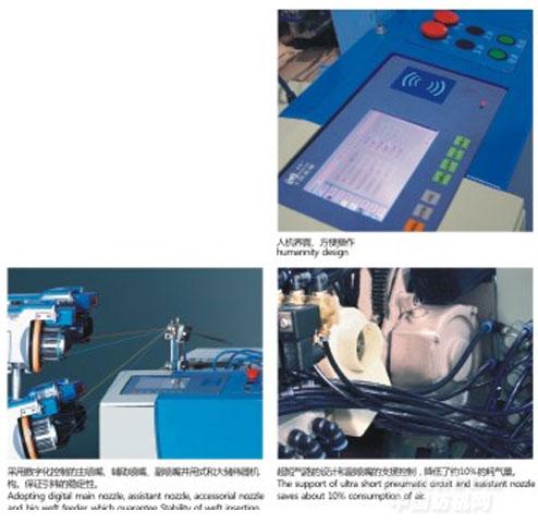 5.主噴嘴、輔助主噴嘴串聯(lián)結(jié)構(gòu),可在較低氣壓的情況下獲得較高的紗速,有利高速引緯。可針對每一種緯紗單獨設(shè)定主噴嘴、輔助主噴嘴、牽伸噴嘴的噴射時間,提高了引緯控制精度,擴大了織機的適用范圍,降低了氣耗。超短氣路設(shè)計和副噴嘴的支援控制降低了約10%的耗氣量。