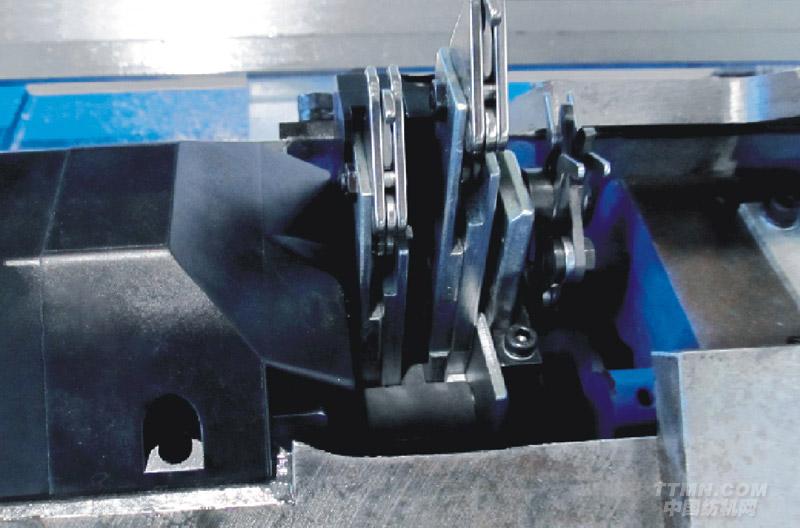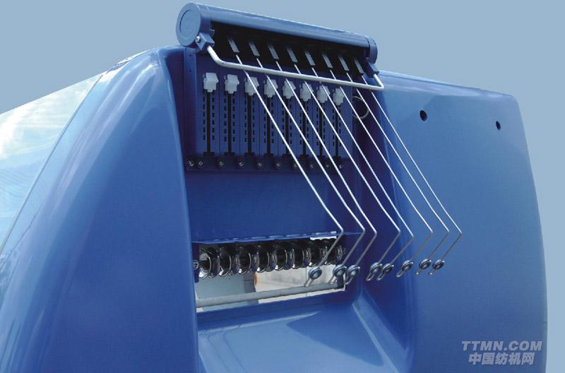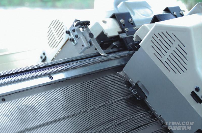 11.換色系統(tǒng):2×8組紗嘴配置在4支導(dǎo)軌的左右兩側(cè),可在針床任何位置切換紗嘴