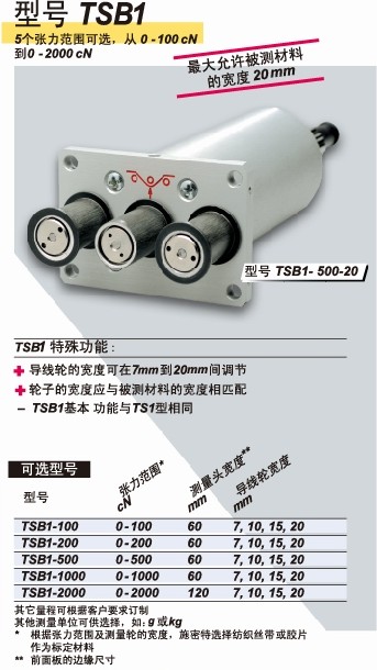 TSB1、TSB2在線傳感器連續(xù)測量低高張力范圍的膠片、繃帶等寬體材料的張力