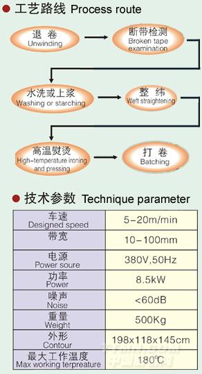 適用于商標(biāo)等帶狀織物的水洗。上漿、整緯、高溫熨燙等整理加工