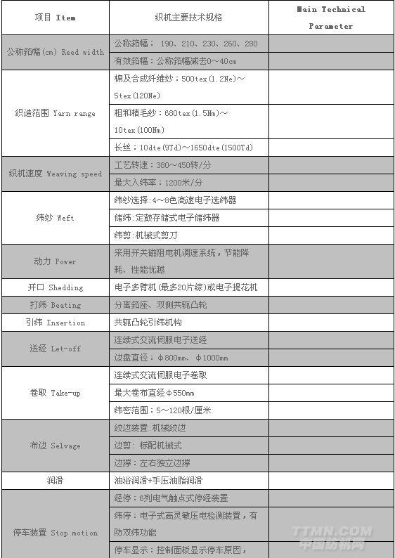 對織機開口、引緯、送經、卷取等機構進行特殊設計,適應品種廣,可織造牛仔布、白坯布、粗紡呢絨、勞動布和燈芯絨布、室內裝飾用全棉和混紡布、輕型和中厚型工業(yè)纖維、亞麻布、玻璃纖維等。