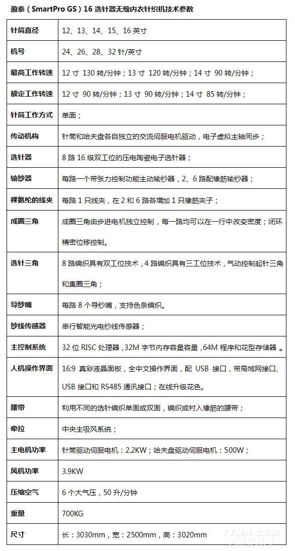 適宜多色彩、多組織的盈泰(SmartPro GS)16選針器無縫內(nèi)衣針織機(jī)