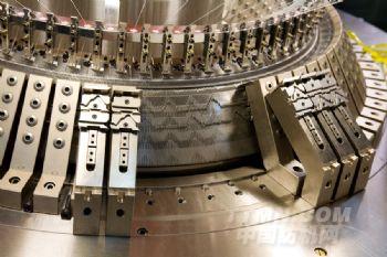 本機臺傾斜式雙面圓盤針織機, 針筒利用三度空間原理設計, 雙面運轉呈Y字型出針,下布受力自然就減輕許多。 本機臺針筒使用內四段、外四段排列,只要您想得出來的組織本機臺都可以滿足您的需求。 更勝於國外高價位的機種。