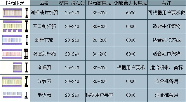 劍桿筘、片梭筘系采用引進(jìn)德國、日本的先進(jìn)生產(chǎn)技術(shù)及設(shè)備所生產(chǎn),是無梭織機(jī)的配套產(chǎn)品,產(chǎn)品質(zhì)量屬國內(nèi)領(lǐng)先水平。