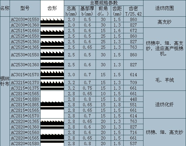 AJ-C4為通用型刺錕齒條,均可為各種錫林道夫針布配套。