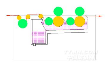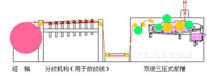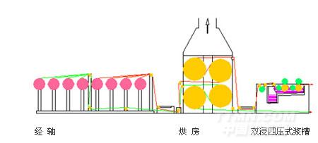 三輥式引紗+雙浸四壓式上漿機構示意圖
