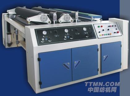 第二組加壓機構(靠烘房一側)由上漿輥、壓漿輥兩輥組成,均為丁腈橡膠輥,上漿輥為高硬度橡膠輥(SHA98)。壓漿輥采用氣缸雙側同步加壓,壓力:0-40KN,具有兩級切換和線性加壓功能。