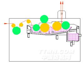 整個烘燥裝置與漿槽的排濕采取一整體結構的排濕汽罩,采用不銹鋼制作,風機對熱濕空氣強迫排風。