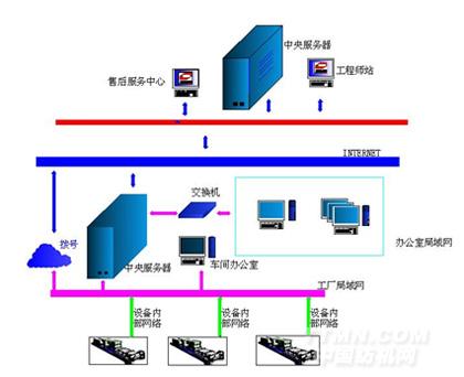 多臺設備局域聯網及通過調制解調器和我們的服務部門連接的示意圖
