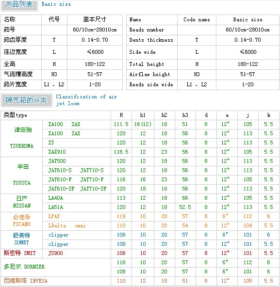 噴氣筘: 適用于各種型號和系列噴氣織機