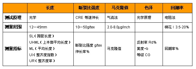 棉纖維斷裂比強度影響紗線強力,棉纖維斷裂比強度按CRE(等速伸長)原理測量,范圍是10-50g/tex,采用1/8inch隔距。斷裂比強度測試在長度測量程序完成后連續進行。