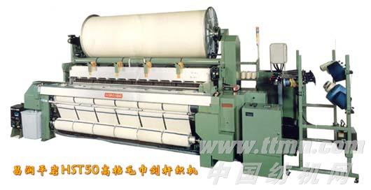 HST50型毛巾劍桿織機是聊城昌潤紡織機械有限公司和日本平巖公司技術合作生產的具有國際先進水平的高檔毛巾織機,其電器部分采用了最先進的電子控制系統。其主要結構特點如下:織機的引緯、打緯機構均采用共軛凸輪驅動的方式,主傳動采用了空氣制動裝置,具有明顯的節能降耗效果,地經送經及毛經送經均采用電子送經機構,卷取采用電子卷取機構,選緯采用八色電子選緯,開口機構配置電子多臂機或電子提花機,織機采用布動起毛的方式,起圈系統采用先進的伺服電機電子起圈系統,具備3—7緯自動控制起毛及轉換功能,毛高的毛倍比可在1:12---1:1.7之間任意調整,并有電子式開口、送經、卷取、停卷、停送、自動補償功能,除能織造普通毛圈類織物外,還能織造高低毛、波浪毛、凸凹毛、平毛、單面毛等高檔毛圈織物。HST50型毛巾劍桿織機填補了國內在高檔毛巾織機領域的空白,達到國際先進水平。