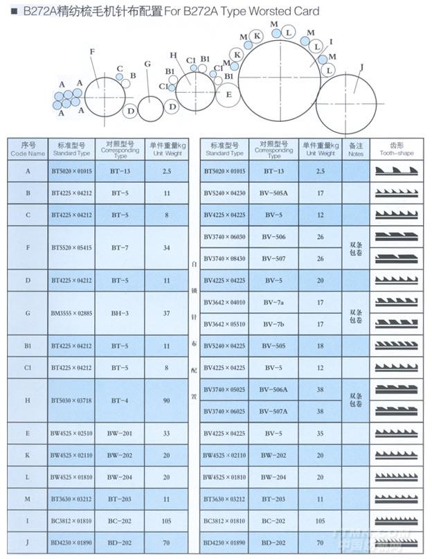 B272A精紡梳毛機(jī)針布配置