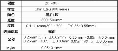 正陽Silicone Pad採用日本信越Shin Etsu進口原料,有隔熱,阻光,緩衝吸震,高彈性耐磨擦,無毒無污染等特性,適用於光電產業,電子及汽車工業等方面,可提供更多客制化選擇及服務。