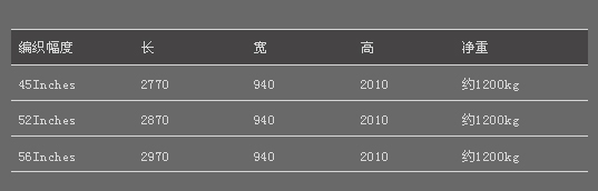 | 編織幅度 | 45、52、56 (英寸); |