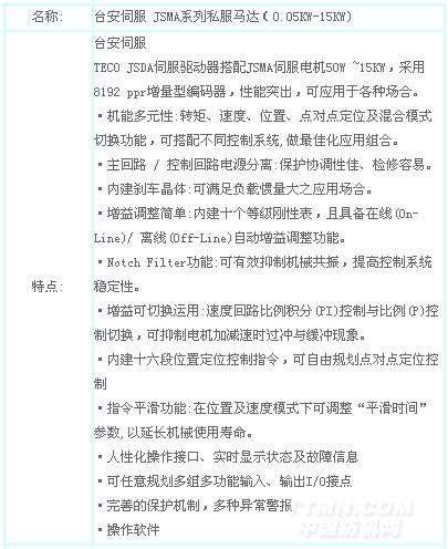 您所在的位置:紡機(jī)網(wǎng) >> 常州步云工控自動(dòng)化有限公司 >> 臺(tái)安伺服 JSMA系列私服馬達(dá)(0.05KW-15KW)