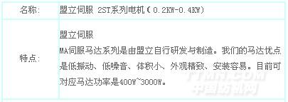您所在的位置:紡機網 >> 常州步云工控自動化有限公司 >> 盟立伺服 2ST系列電機(0.2KW-0.4KW)